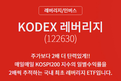 - 기초지수인 KOSPI200지수가 일별 1% 상승시 KODEX 레버리지는 2% 상승 추구(KOSPI200 지수가 일별 1% 하락시에는 2% 내외 하락)