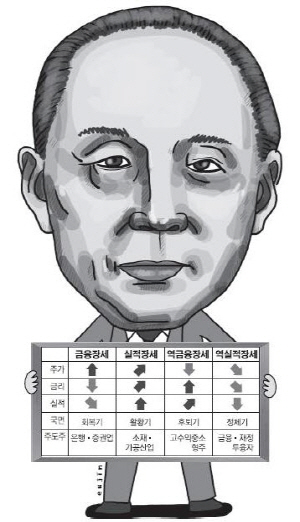 그는 경기상황에 따라 들쭉날쭉한 복잡한 증시에서도 경기순환에 따라 일정한 패턴이 나타난다며, 금융·실적·역금융·역실적장세가 반복되는 성질이 있음을 증명했다.