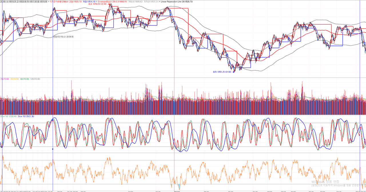 - 삼선이 지표를 추가했다. 세 선이 90 이상이거나 10이하일때 매수,매도 포인트가 된다.
