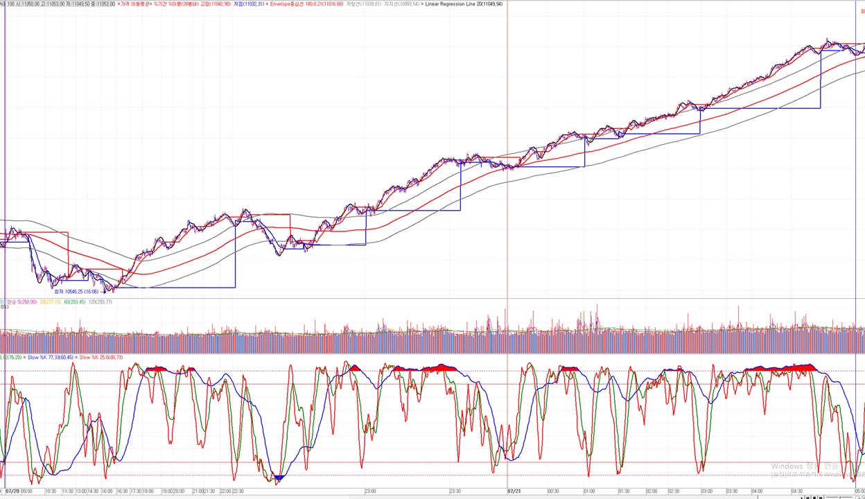 - 미장 개장 이후 약간 상승하다가 10분봉 기준선 터치 이후 강하게 원웨이로 상승하였다.